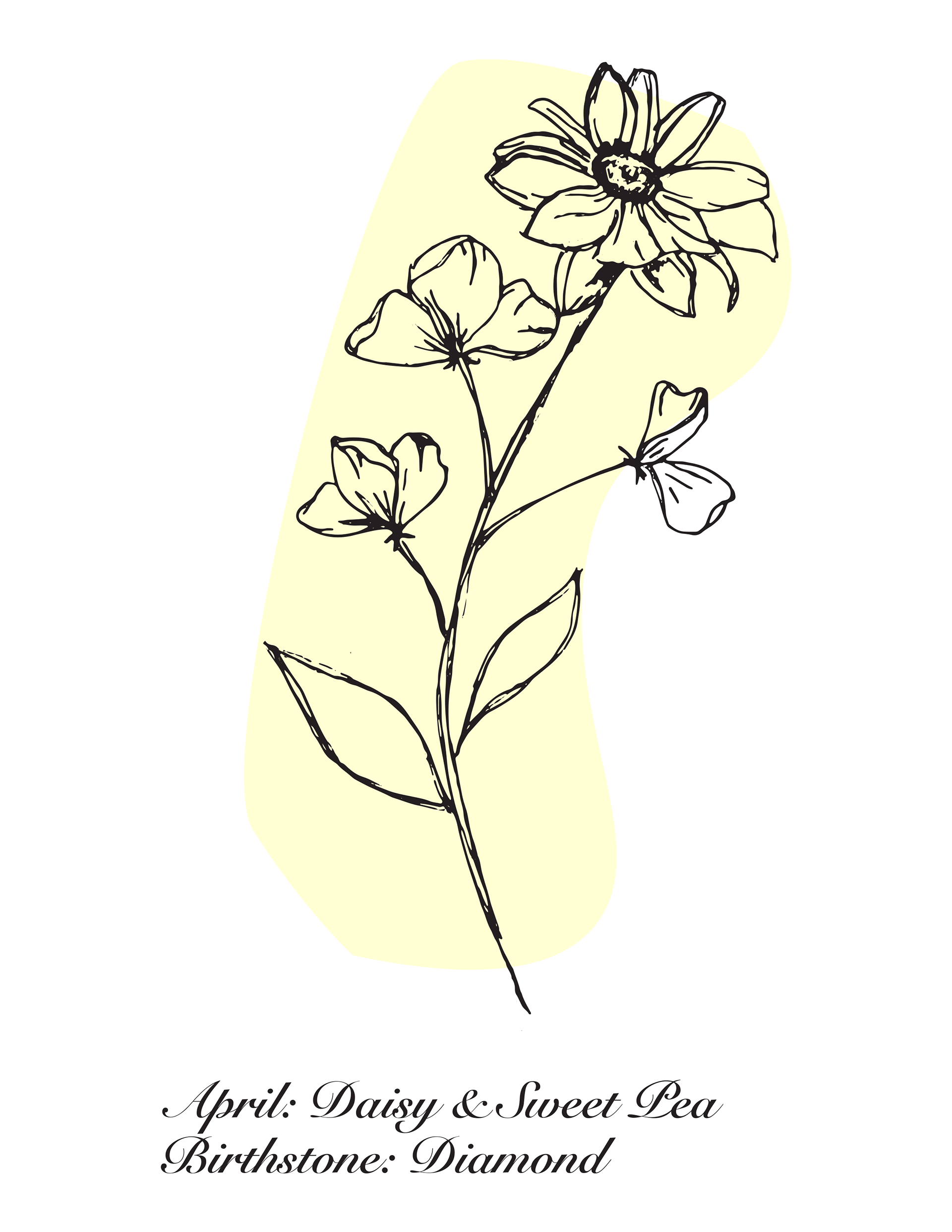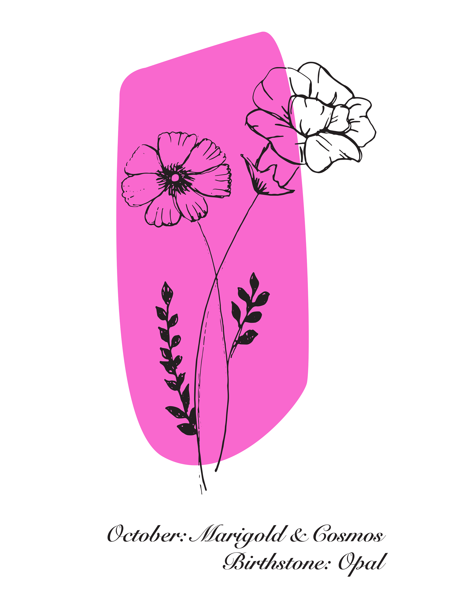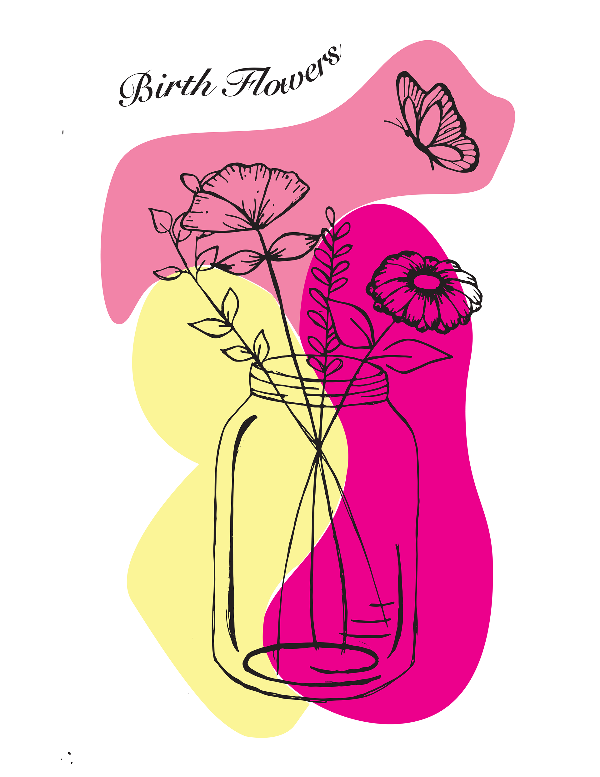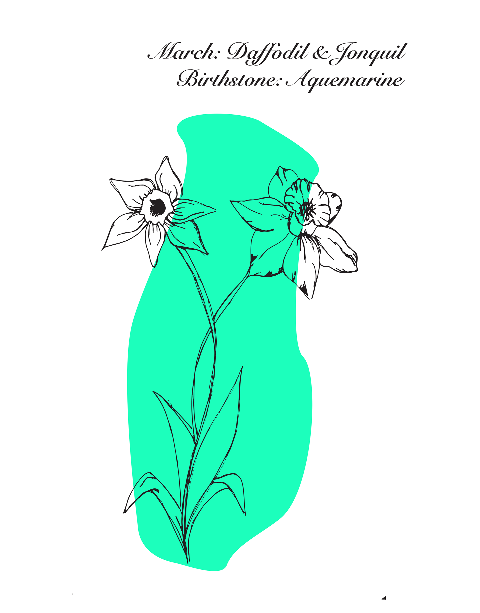 Collegiate project created throughout my undergraduate senior year, featuring hand-drawn birth flowers for each month paired with the colors of their corresponding birthstones. Designed using Adobe Illustrator, Adobe Photoshop, and Procreate.